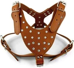 Kuntrona 5 Colors Rhinestone Leather Bling Pet Dog Harness For Medium Big Dogs Black M