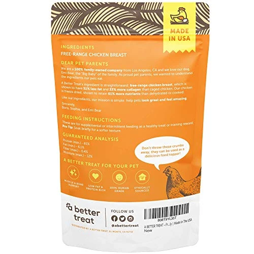 - A BETTER TREAT, YOU CAN TRUST – Our treats are made in the USA at our FDA regulated facility to ensure human grade quality. Freeze drying is shown to be the best way to preserve natural nutrients with over 61% more nutrients retained relative to dehydration or cooking. Our mission is to ensure only the freshest, healthiest, and best quality ingredients to make A BETTER TREAT.