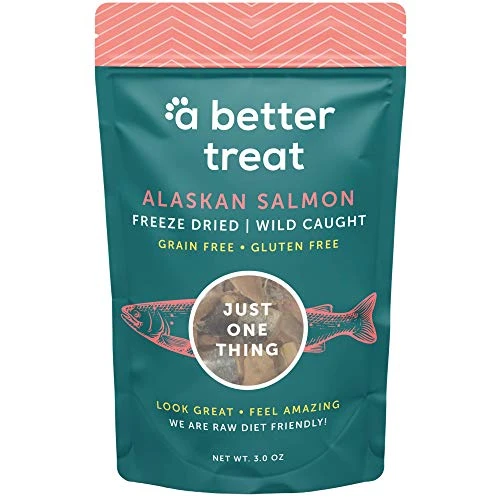 - 100% FREEZE DRIED WILD CAUGHT ALASKAN SALMON: Our treats are excellent for pets with allergies, sensitive stomachs, diabetes, or dietary requirements. These treats are grain-free, gluten-free, and raw-diet approved. Wild Caught Salmon is shown to have 68% less saturated fat and avoids chemicals and antibiotics. We demand the absolute best quality salmon – no additives, no funny business, no nonsense.