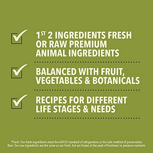 - Balances protein-rich animal ingredients, whole fruit and nutritious vegetables help your dog maintain a healthy weight