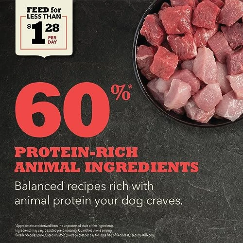 - High protein dog food recipe features 60 percent* high-quality animal ingredients and 40 percent** wholesome fruits, vegetables and nutrients and fiber to help support digestive health