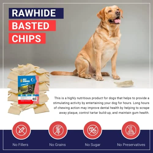 - PERFECT RAWHIDE CHEWS: Long lasting beefhide chips are made of good ingredients. Our dog rawhide chew is produced without artificial ingredients and additives or chemicals, as well as any preservatives. These dog chews are high in protein and contain thicker fibers that result in longer-lasting chews.