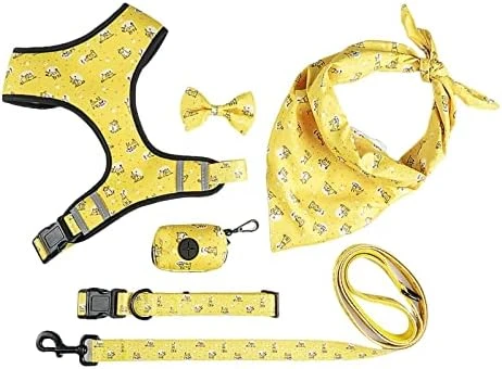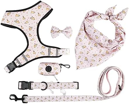 - ▲Features: Collar with bowknot, fresh and fashionable, pet-loving temperament is more individual, the buckle is easy to put on and take off, the size of the neck can be adjusted freely, and the dog harness is designed with a durable buckle lock to ensure that it will not fall off accidentally.