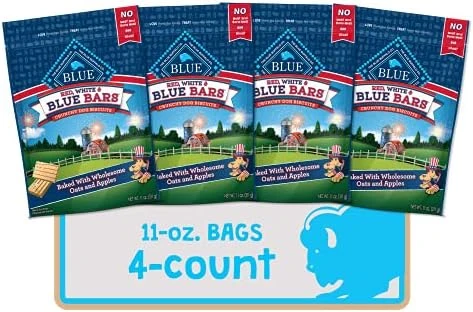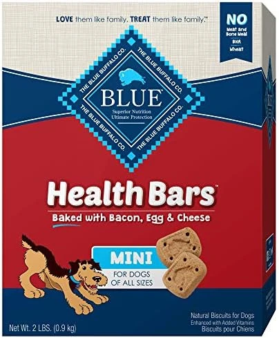 - Contains one (1) 32-oz box of BLUE Health Bars Mini Natural Crunchy Dog Treats Biscuits, Apple & Yogurt
