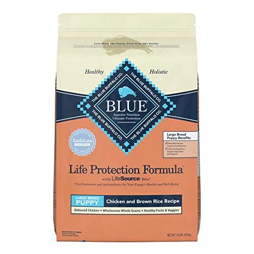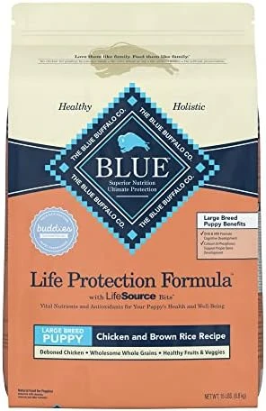 - Contains one (1) 15 lb. Bag of BLUE Life Protection Formula Large Breed Puppy Dry Dog Food, Chicken and Brown Rice