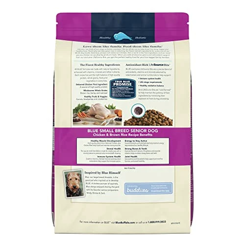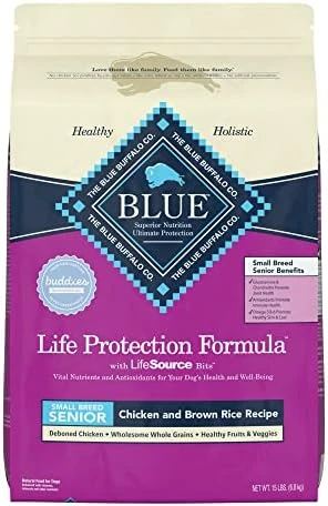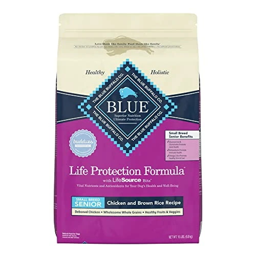 - Contains one (1) 15 lb. Bag of BLUE Life Protection Formula Small Breed Senior Dry Dog Food, Chicken and Brown Rice
