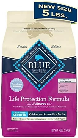 - FOR SMALL BREED SENIOR DOGS: BLUE Life Protection Formula Small Breed Senior Dog Food contains glucosamine and chondroitin to support joint health & mobility and essential proteins and carbohydrates to maintain energy requirements for a healthy lifestyle