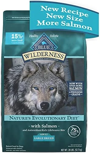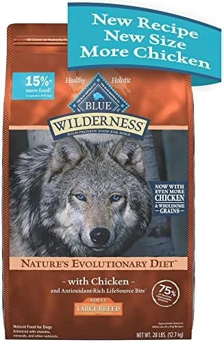 - Contains one (1) 24 lb bag of BLUE Wilderness High Protein Natural Large Breed Adult Dry Dog Food plus Wholesome Grains, Chicken