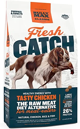 - FULL OF THE GOOD STUFF: Bully Max Classic’s Fresh Catch natural dog food (with added vitamins, minerals, and trace nutrients) is the next best thing to making a fresh-cooked meal for your dog and preparing it in the slow cooker every day. Make their tail wag and their mouth water while providing high-quality proteins to support strong muscles and natural energy.