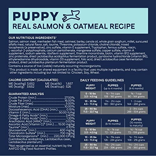 - Real food ingredients for the newest member of your family. Crafted with real salmon as the first ingredient, paired with wholesome grains like oatmeal, barley and sorghum