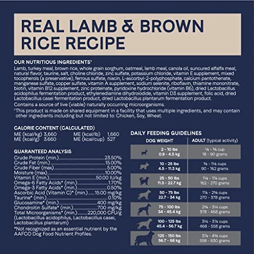 - Real food ingredients for the taste your dog will love. Crafted with real lamb as the first ingredient, paired with wholesome grains like brown rice, sorghum and millet