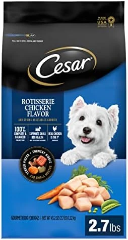- CESAR Dry Dog food has a re-sealable zipper on every bag to help maintain freshness
