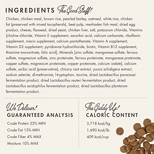 - HIGH-QUALITY CHICKEN – Our dog kibble has high-quality chicken. Very digestible and highly palatable source of protein that provides amino acids required for maintaining muscle, tissue repair, hormone synthesis, and other metabolic processes.