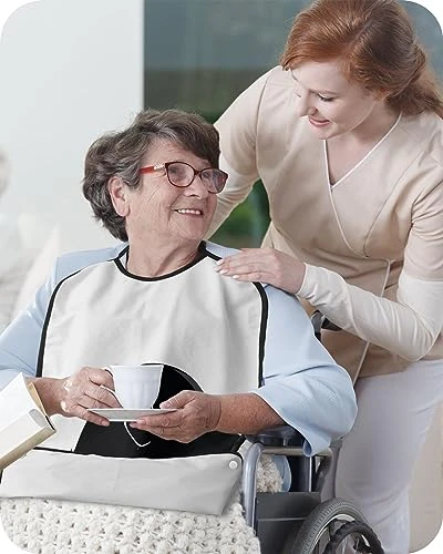 - Convenient and Practical: with an adjustable snap closure, these reusable bibs for adults are easy to wear and take off, can be adjusted according to your neck circumference; And the bibs have optional crumb catchers about 4.7 inches in depth, can catch the fallen scraps of food and make it easier to clean up after meals