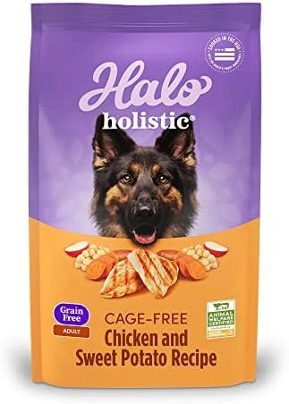 - Responsibly sourced: Halo Holistic uses GAP (Global Animal Partnership) certified Cage-free chicken raised without antibiotics, and non-GMO ingredients.