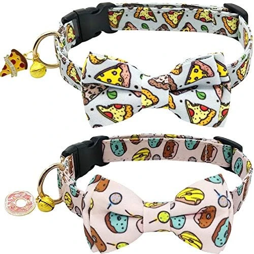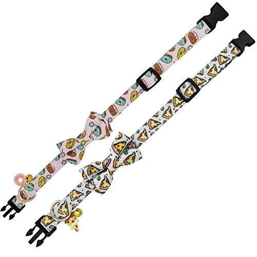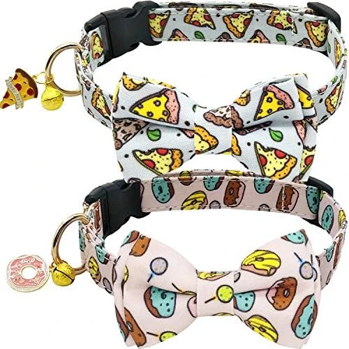 - Cute Element and Premium Material: The patterns on the collar choose the popular Doughnut and Pizza patterns, the colors are bright, bring a sense of vitality to the pet. And pet collars are made with high quality and Soft cotton webbing fabric,which will be soft and comfortable to touch.
