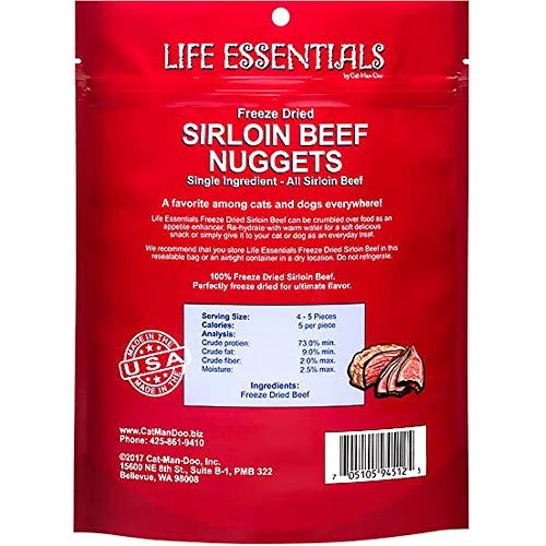 Be the first to review “LIFE ESSENTIALS BY CAT-MAN-DOO Freeze Dried Sirloin Beef , Sirloin Beef & Cheese Nugget Dog & Cat Treats – 3 Oz , 6 Oz (Sirloin Beef, 6 OZ)” Cancel reply