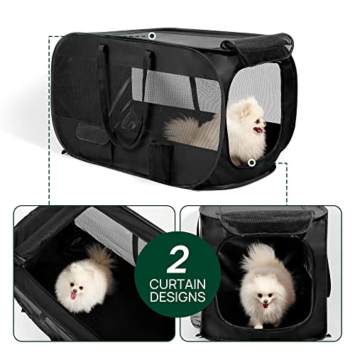 - DESIGN FEATURES: Mesh Ventilation on Front and Side Panels. Easy Open/Close Zipper Door. Can accommodate blankets and beds for Optimum Comfort and Personalization. If you have party with your friends or family indoor, or traveling outdoors. This pet bed offers a safe, cozy place for a cat or small dog to snooze.