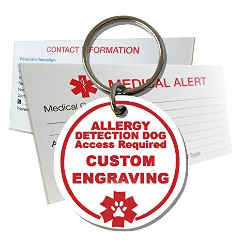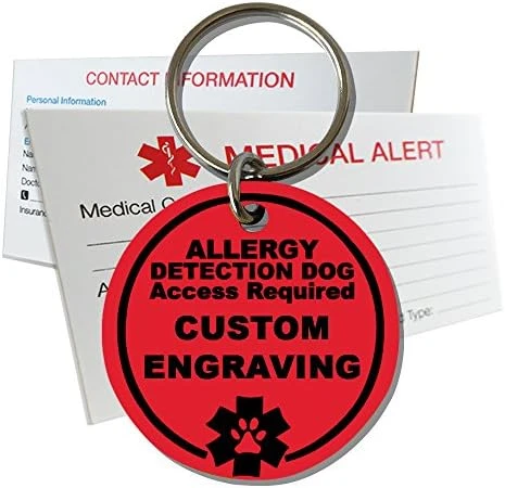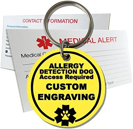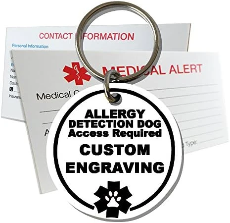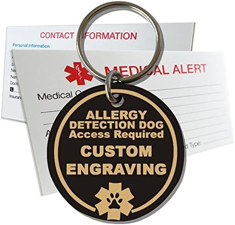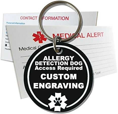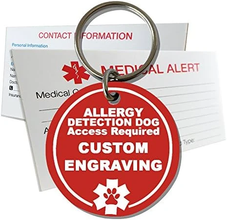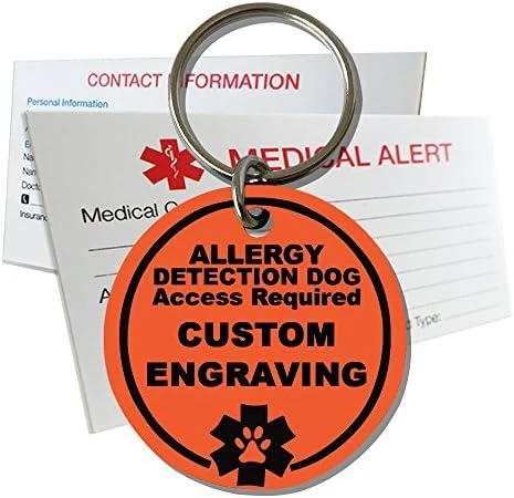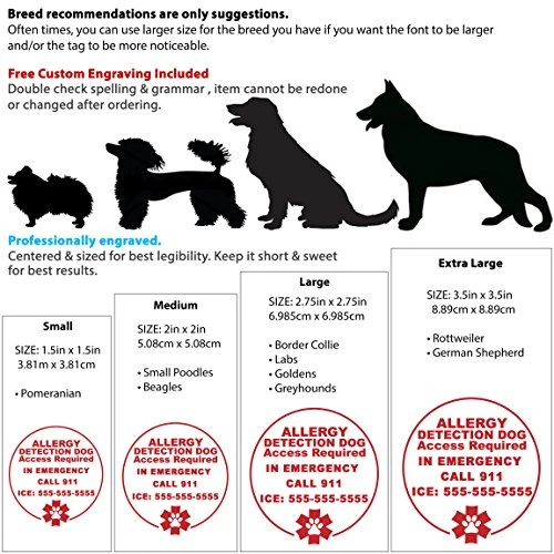- ENGRAVING: Pre-engraved with “Allergy Detection Dog Access Required” and Custom Engraving