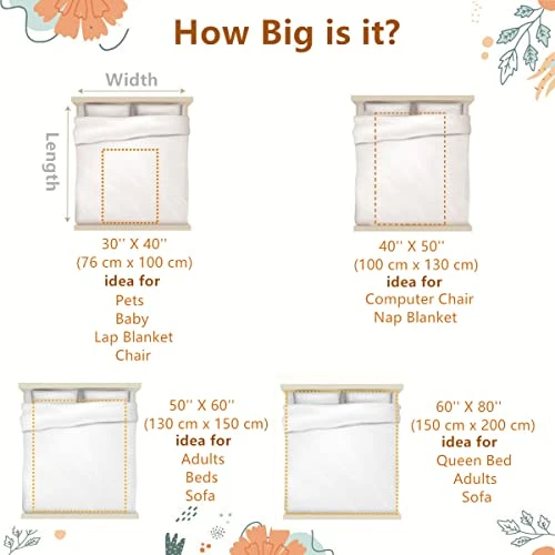 - ΰΈ Versatile Use & Size: There are four size of throw can be choose, such as 30″x40″, 40″x50″, 50″x60″ inches. 60″x80″ inches are suitable for family home use, such as pets blanket, Air-conditioning blanket, nap blankets, lap blanket, small child blanket, car blankets or picnicking blankets etc. You can buy the corresponding size according to your needs.