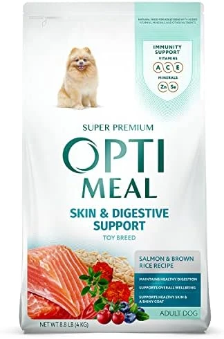 - SUPPORTS OVERALL WELLBEING – Optimeal’s toy breed dog food recipe is made from high-quality salmon and brown rice to help support healthy digestion with protein and prebiotic FOS ensuring you tiny doggo stays healthy and happy.