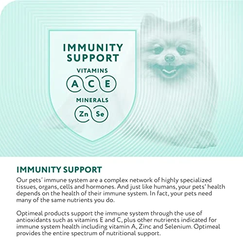 - IMMUNITY SUPPORT – Optimeal dog food toy breed recipe support the immune system through the use of antioxidants such as vitamins E and C, plus other nutrients indicated for immune system health including vitamin A, Zinc and Selenium. Optimeal provides the entire spectrum of nutritional support