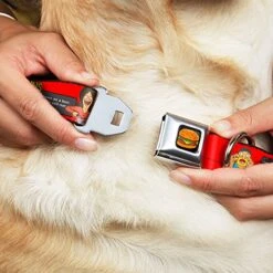 Dog Collar Seatbelt Buckle Bobs Burgers 6 Food Group Blocks Reds 18 To 32 Inches 1.5 Inch Wide