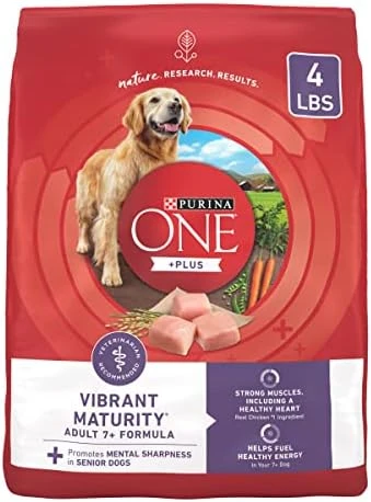 - Purina dog food for senior dogs with MCT-rich vegetable oil to nourish and promote mental sharpness and shows an increased average activity level of over 20 percent in dogs seven and older