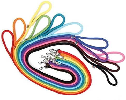 - POLYESTER VS NYLON – Many other rope leads are made from Nylon, but here’s why Polyester is not only better but also safer – Polyester is especially resistant to stretching and shrinking and remains crips and resiliant even while wet. Any dog leash being used outdoors needs to maintain it’s strength while going through wet+dry cycles