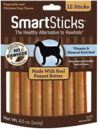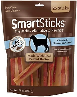 - MADE WITH REAL PEANUT BUTTER: These SmartSticks chews are made with real peanut butter for a scrumptious taste your dog can’t resist.