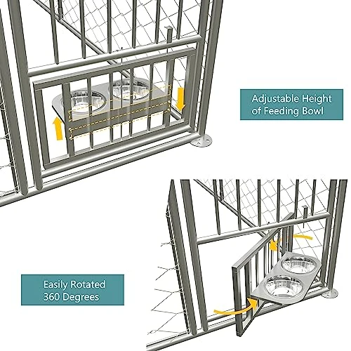- 【Rotating Feeder】There is a rotatable dog feeder on the door, equipped with 2pcs 6.3″ stainless steel food bowls, which can be easily rotated 360 degrees, you don’t have to enter the dog crate to feed the dog, the height of the feeder can be adjusted, ideal for dogs of all sizes.