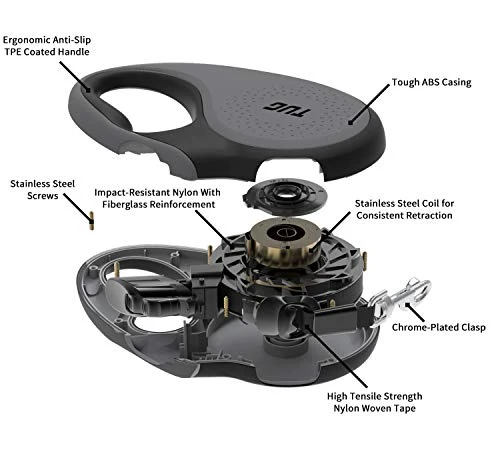 - 16 ft Tape Leash With Easy-Adjust Retraction; Tangle Free 360 Degree Tape Movement