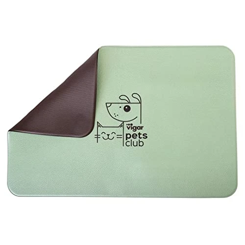 - DETAILS AND MATERIALS: The measurements of the dog feeder mat are: 60 x 40 x 0.5 cm. Polyvinyl chloride (PVC) has been used for its manufacture.