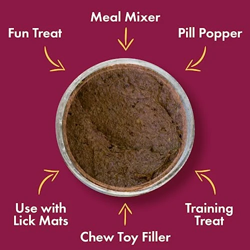 - Versatile dog treat: Low in calories but rich in flavour, this dog treat spread can be used as food topper, kong filler, pill popper and training treat.