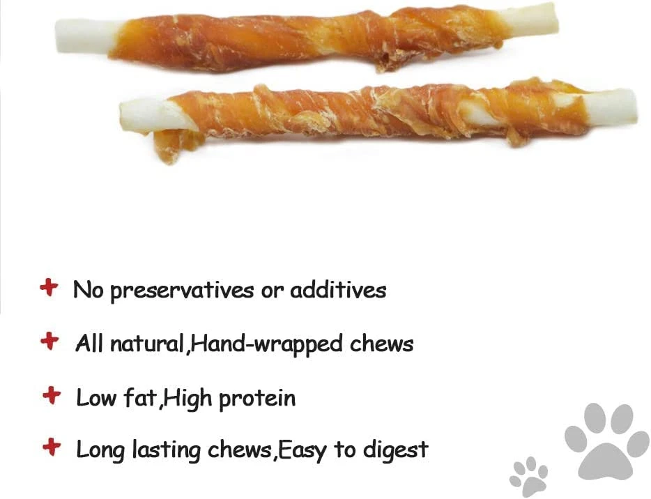 - 【Supplement High Protein】 These chicken rawhide sticks are handmade. chicken wrapped around the sticks, they are high protein low fat, easy digest and absorb, a great lean source of protein that you can add in your dogs daily diet.